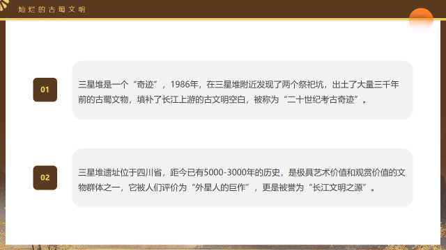 中国风神秘的三星堆介绍PPT模板20250529 05-29 PPT模板 如果您喜欢本模板,可以点击这里免费升级成为VIP,全站模板一律免费下载,欢迎持续关注,精彩模板每天推送 预览结束,一共17页,请下载后查看 如果您喜欢本模板,可以点击这里免费升级成为VIP,全站模板一律免费下载,欢迎持续关注,精彩模板每天推送 资源下载此资源下载价格为19飞币,请先登录有任何充值和下载问题,请发送邮件到:yuanma8888@qq.com 资源下载下载价格:19 飞币VIP优惠:免费请先登录有任何充值和下载问题,请发送邮件到:yuanma8888@qq.com 企业培训