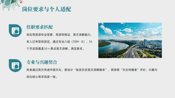 英语专业求职综合展示PPT模版20240923 3周前 PPT模板 如果您喜欢本模板,可以点击这里免费升级成为VIP,全站模板一律免费下载,欢迎持续关注,精彩模板每天推送 预览结束,一共19页,请下载后查看 如果您喜欢本模板,可以点击这里免费升级成为VIP,全站模板一律免费下载,欢迎持续关注,精彩模板每天推送 资源下载此资源下载价格为19飞币,请先登录有任何充值和下载问题,请发送邮件到:yuanma8888@qq.com 资源下载下载价格:19 飞币VIP优惠:免费请先登录有任何充值和下载问题,请发送邮件到:yuanma8888@qq.com 竞聘竞选